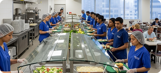 We understand that institutions need reliability and affordability. That is why we manage end-to-end cafeteria operations, from sourcing and preparation to service and quality control. Strict hygiene standards, regular staff training and compliance checks ensure safe dining environments. By engaging with administrators, we provide transparency in cost structures and operational planning, making it easier to run campus dining at scale. Our role is to create dining systems that strengthen both student wellbeing and institutional credibility.